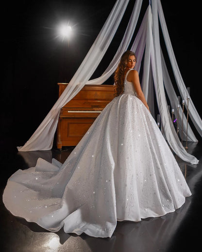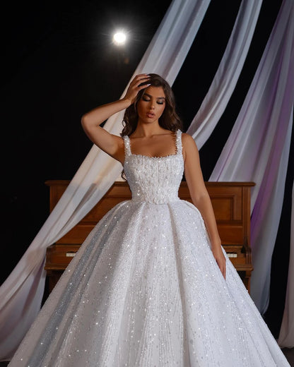 Pay in 4 instalments with AfterPay, Buy Now Pay LaterVintage A-Line Sequins Square Collar Bridal Gown Sweep Train Spaghetti Strap Wedding Dresses