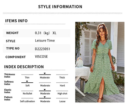 Pay in 4 instalments with AfterPay, Buy Now Pay LaterVintage Floral Dresses for Women Elegant Loose Slit Summer Beach Holiday Leisure Long High Waist Print Dress