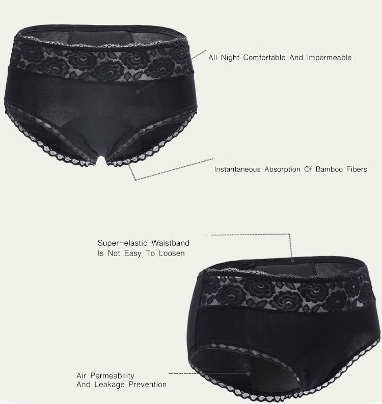 Pay in 4 instalments with AfterPay, Buy Now Pay LaterVIP Four Layers of Leak-proof Menstrual Underwear Lace Rose embroidery Breathable Physiological Period Panties