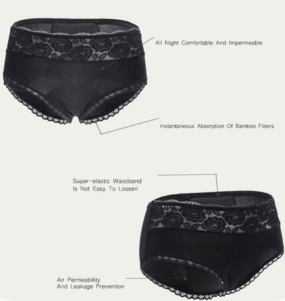 VIP Four Layers of Leak-proof Menstrual Underwear Lace Rose embroidery Breathable Physiological Period Panties