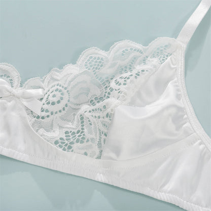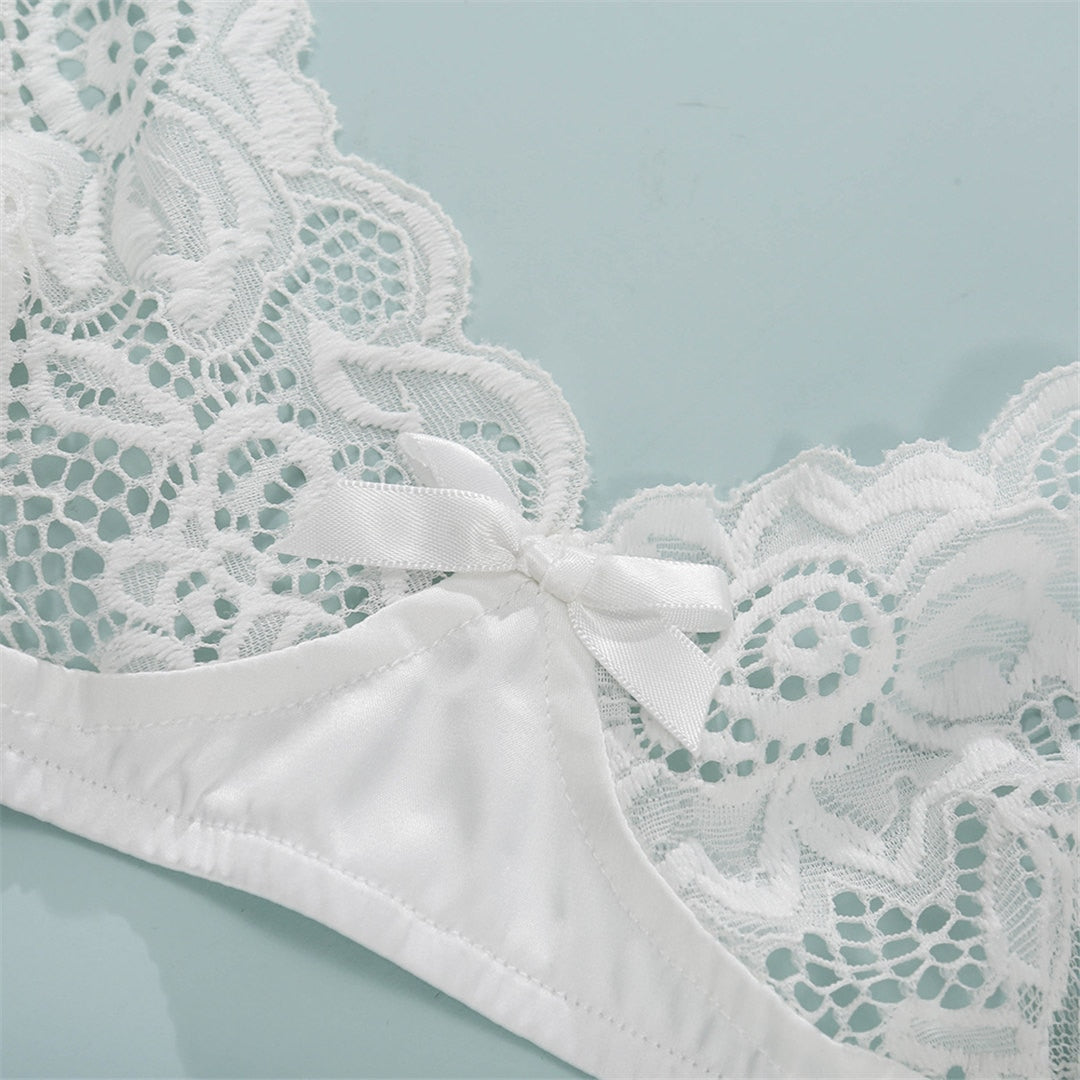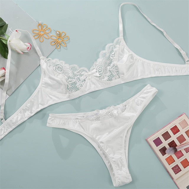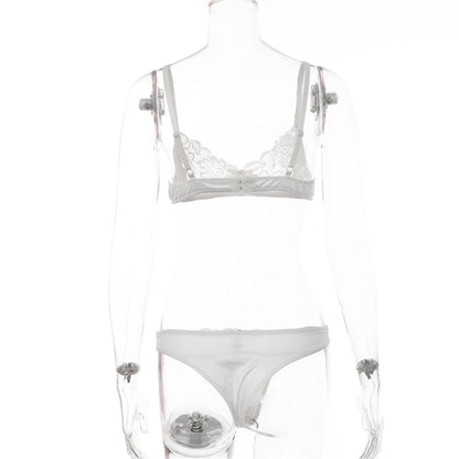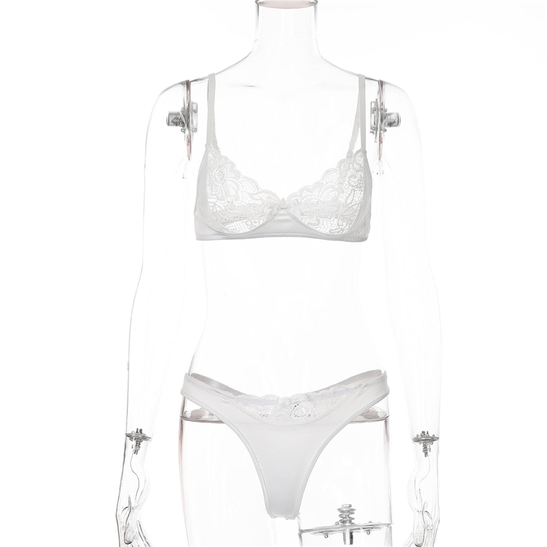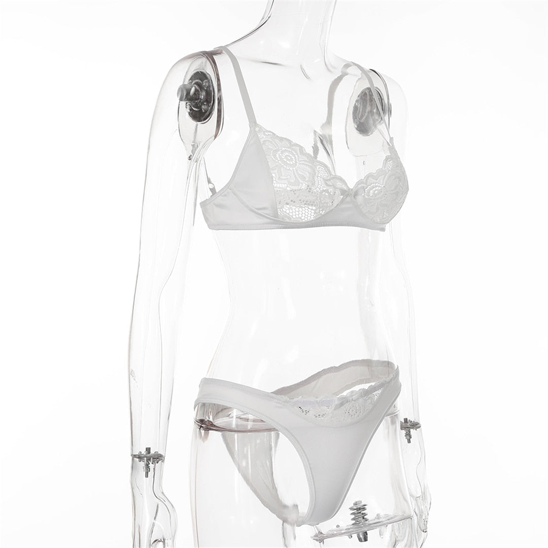 White Lingerie Bra Lace Patchwork Underwear Transparent Push up Bra and Thong Women Sexy Erotic Lingerie Set