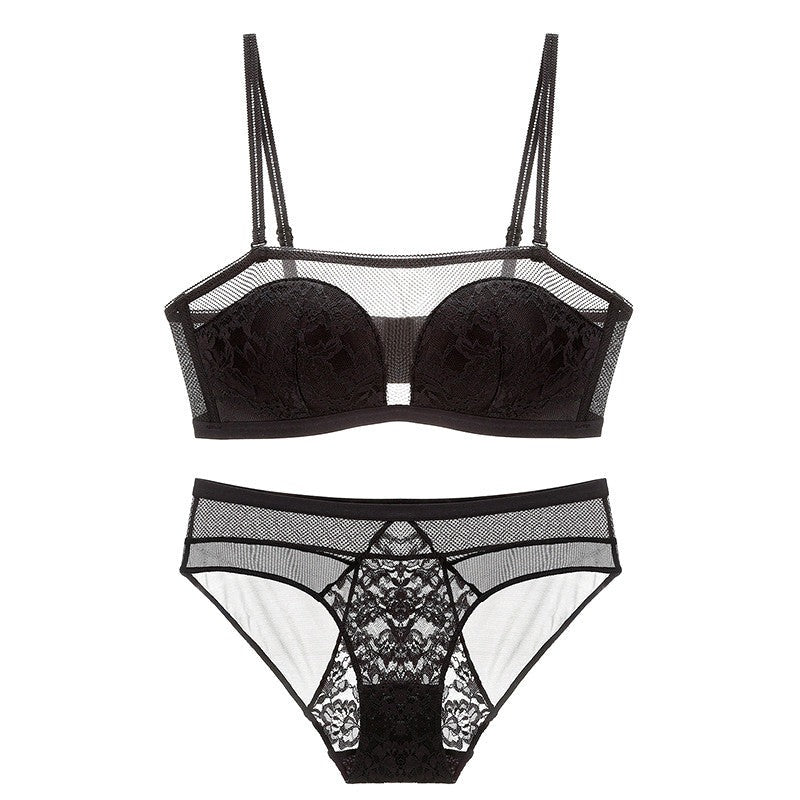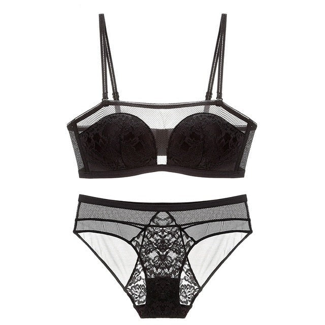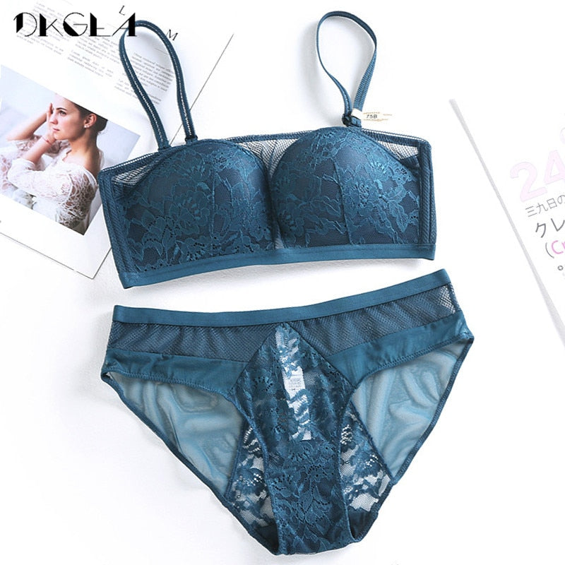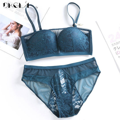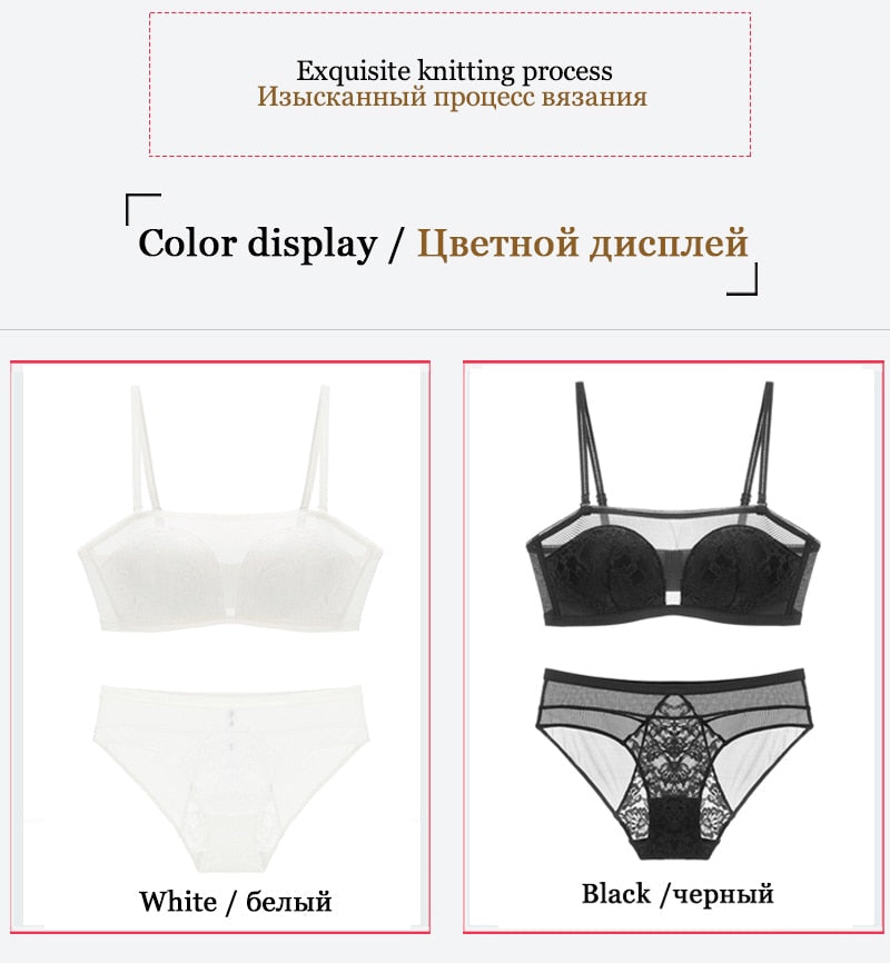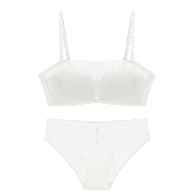 White Tube top Lace Seamless Brassiere Cotton Bra Panties Embroidered Underwear Lingerie Set