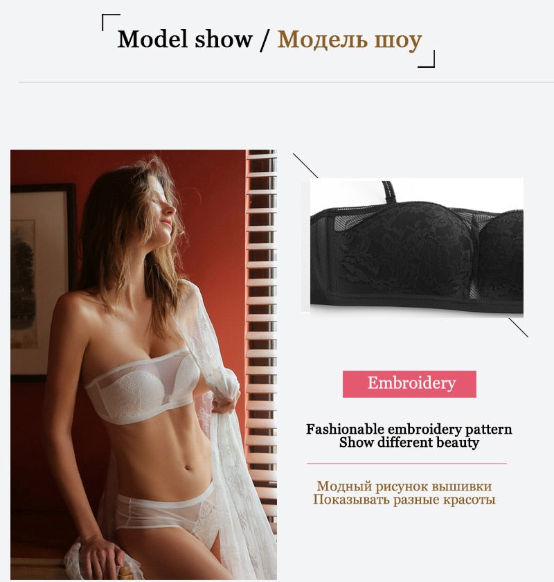 Pay in 4 instalments with AfterPay, Buy Now Pay LaterWhite Tube top Lace Seamless Brassiere Cotton Bra Panties Embroidered Underwear Lingerie Set