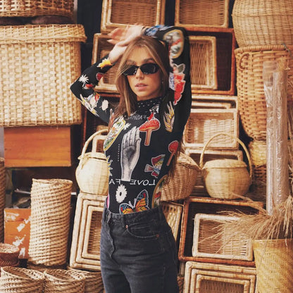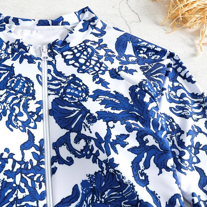 Women Print Floral One Piece Swimsuit Long Sleeve Bathing Suit Swimsuit Vintage Beachwear Surfing Swim Suit