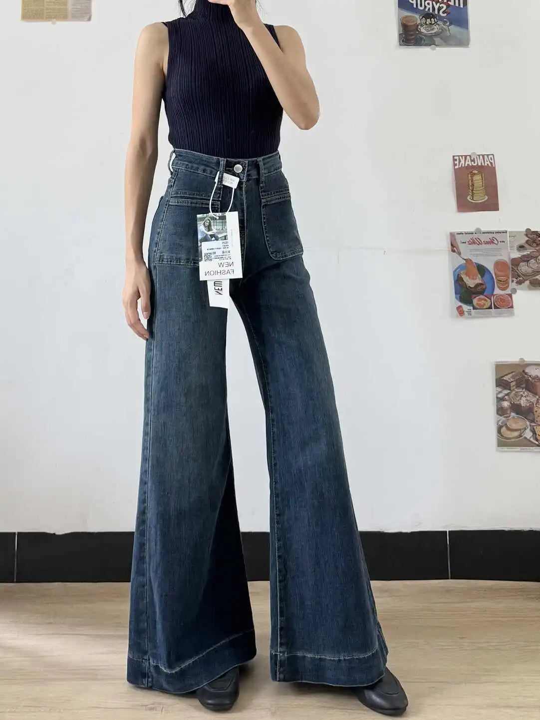 Pay in 4 instalments with AfterPay, Buy Now Pay LaterWomen's Autumn Retro Micro-flared Solid Color High-waisted Straight Wide Leg Pants Loose Floor-length Jeans