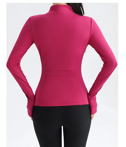 Women's Fitness Running Stretchy Tight Long Sleeve Top Sportswear Full Zip Yoga Top with Thumbholes Training Wear Jacket