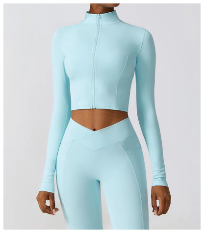 Women's High Elastic Crop Top Spandex Long Sleeve Yoga Shirts Sportswear Yoga Jacket Workout Gym Clothing Sports Clothes