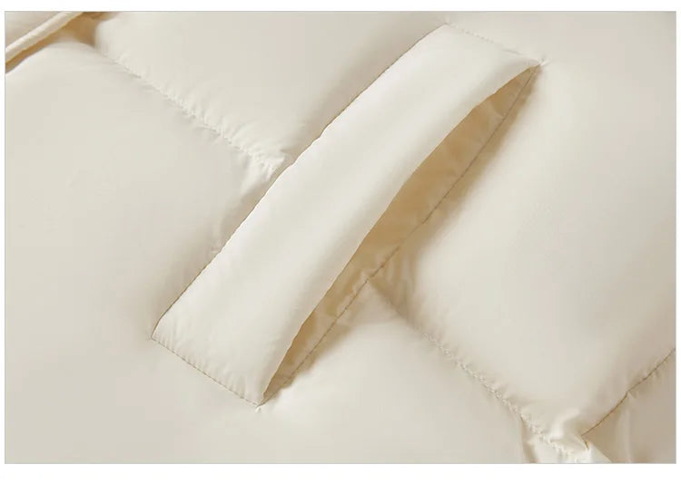 Conquer the cold in our Women’s Hooded Down Puffer Jacket, designed to combine comfort, practicality, and timeless style. Crafted with premium white duck down (150g–200g fill) and a three-proof outer shell (water-resistant, windproof, and anti-stain), this jacket keeps you cozy and protected in winter weather.