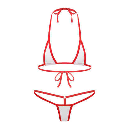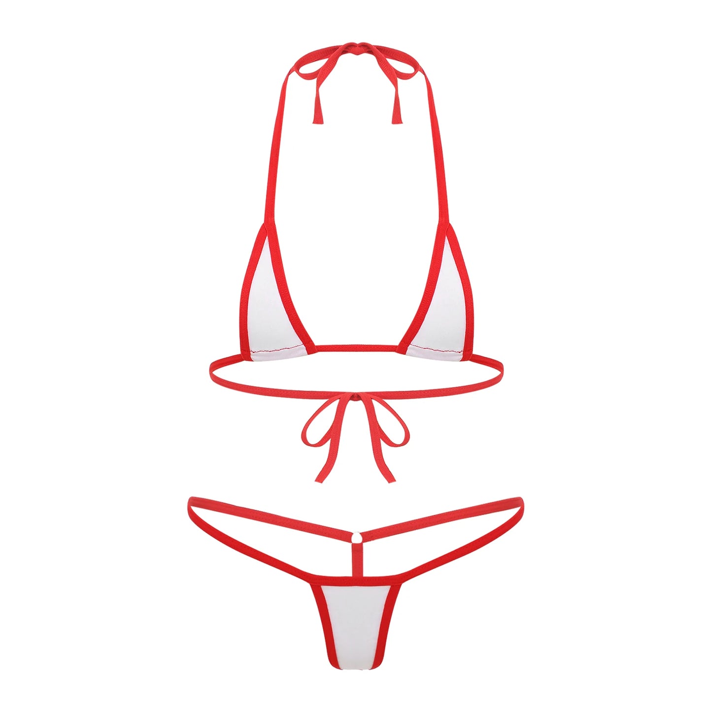 Womens Brazilian Mini Bikini Swimsuit Lingerie Swimwear No Padding Bra with T-Back Thong Briefs Bathing Suit