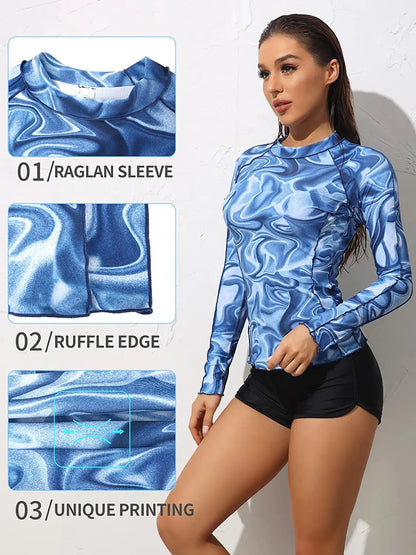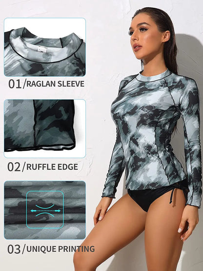 Pay in 4 instalments with AfterPay, Buy Now Pay LaterWomen's Long Sleeve Rash Guard Shirts Swimwear Rash Guard Top Surf Top Tie Dye Printing Close-fitting Shirt UPF 50+ Top