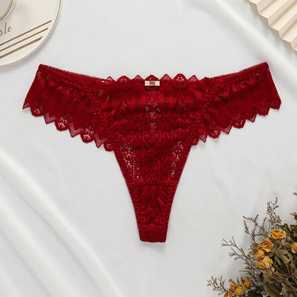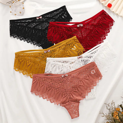 Women's Panties Lace Underwear Low Waist Briefs Hollow Out G String Underpants Solid Comfortable Female Lingerie
