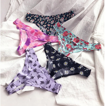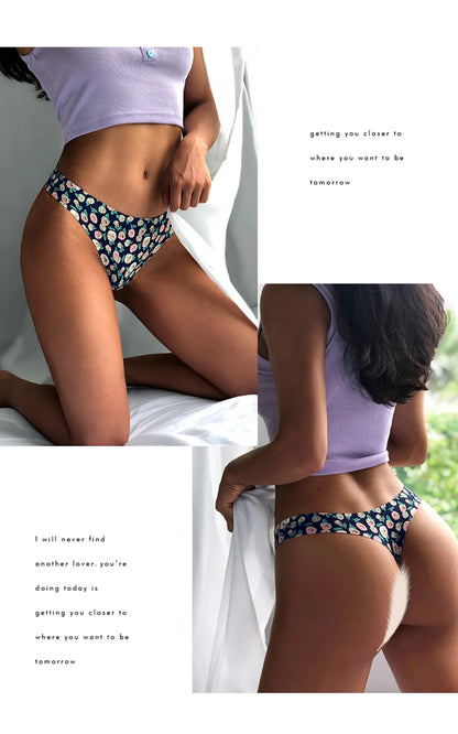 Women's Panties Printed Thong Underwear Seamless T Panties Breathable G-String Ladies Lingerie