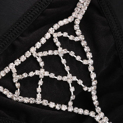 Women's Panties Rhinestone Thong Bikini Body Jewellery Shiny Crystal Mesh Thong Underwear Body Chain for Women