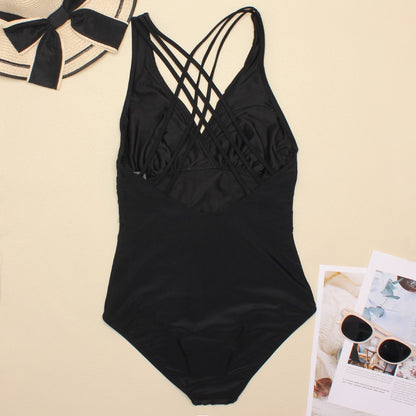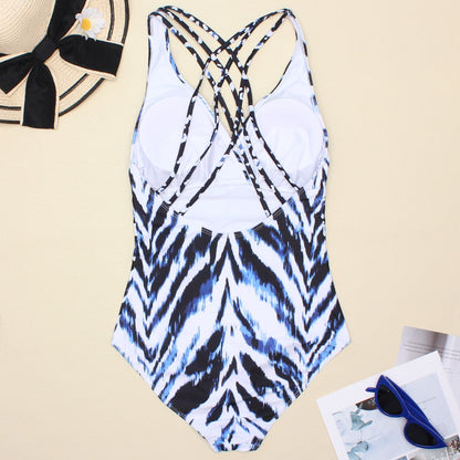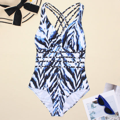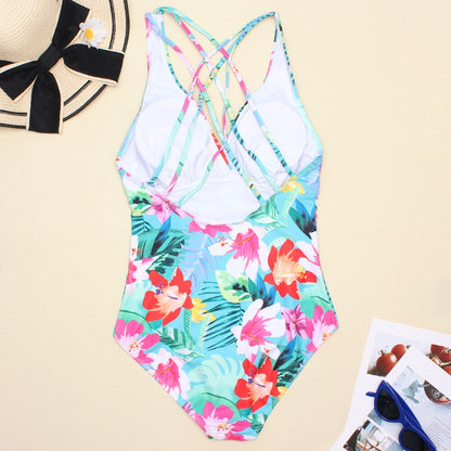 Women's Printed One Piece Swimwear Backless Swimsuit V Neck Summer Beach Wear Bathing Suit