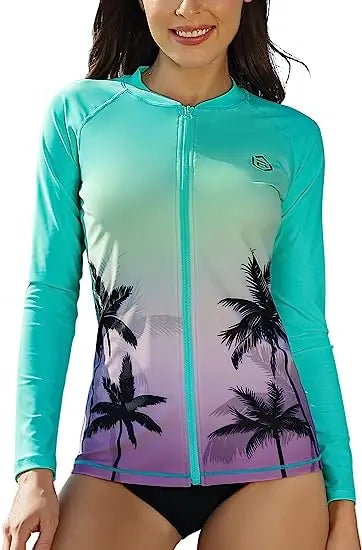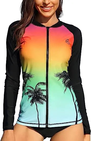 Pay in 4 instalments with AfterPay, Buy Now Pay LaterWomen's Rash Guard UPF 50+ Crew Neck Long Sleeves Zipper Gradients Color Quick Dry Soft Swimming Surfing Tops