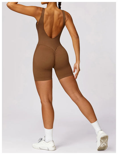Women's Romper Yoga Hollow Backless Scrunch Seamless One Piece Outfit Fitness Overalls Playsuit Gym Sport Short Jumpsuit