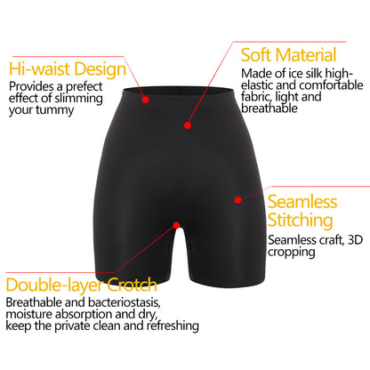 Women's Safety Slip Shorts Under Skirt Seamless Anti Chafing Boxer High Waist Boyshorts Anti-emptied Panties Yoga Short Pants