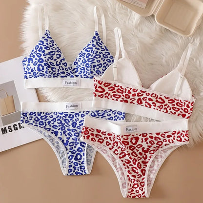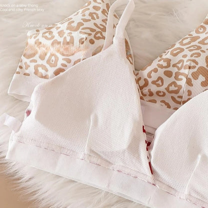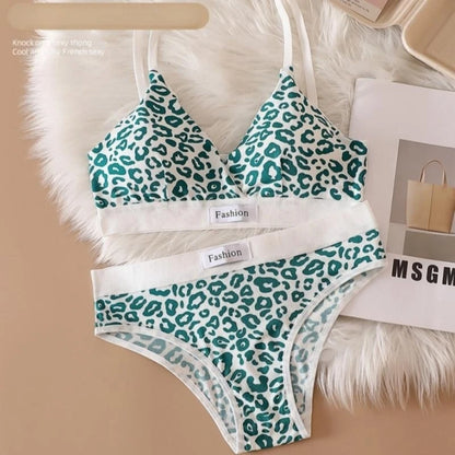 Women's Seamless Bra Set Leopard V-neck Brassieres and Low Rise Panties Lingerie Sport Bra Top Female Cotton Underwear Set