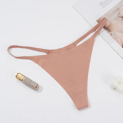 Women's Seamless Underpants Ice Silk Thongs Low Waist Bikini T-back Solid Color Traceless G-String Panties