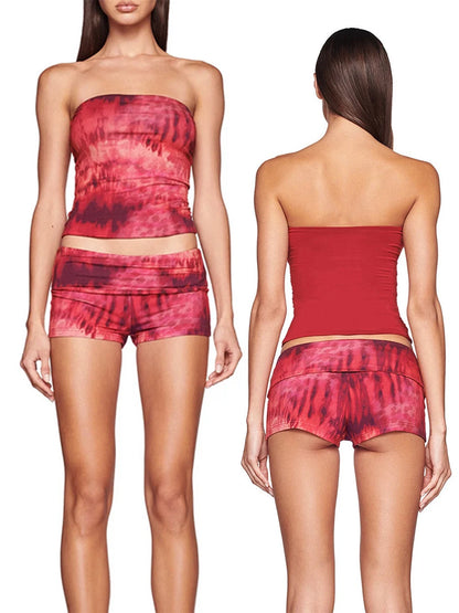 Women's Shorts Set 2 Piece Summer Outfits Star Print Crop Tube Tops with Fold Over Shorts for Streetwear Beach Y2K Ourfit Set