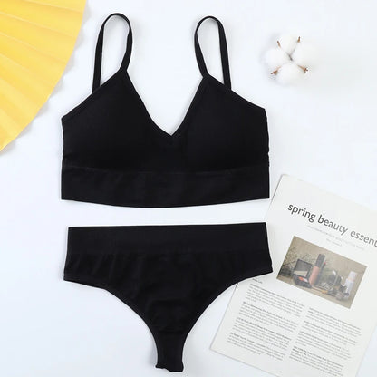 Women's Sport Bra Set Backless Bralette Seamless Padded Bra G String Thong Lingerie Set