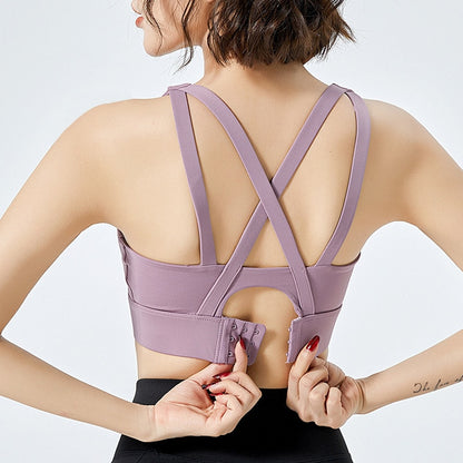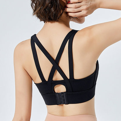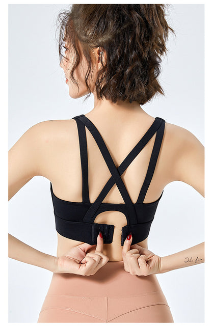 Women's Sports Bra Yoga Underwear Fixed Chest Pad Crop Tops Gym Sports Bras Shockproof Fitness Push Up Workout Bralette