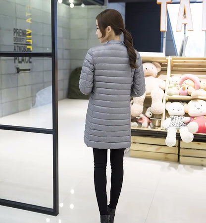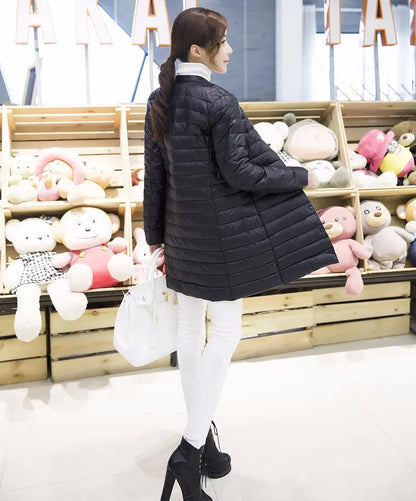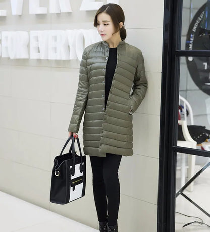 Women's Spring Padded Warm Coat Ultra Light Duck Down Jacket Long Overcoat Slim Solid Jackets Winter Coat Portable Parkas