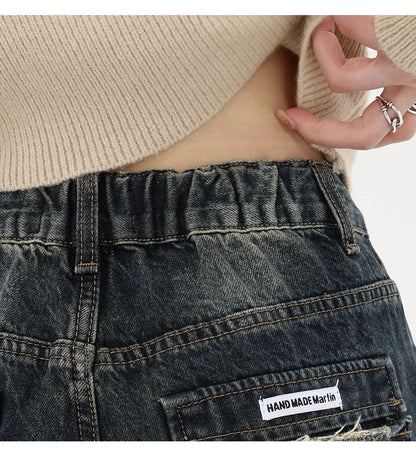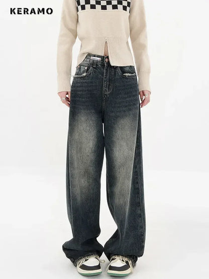 Women's Streetwear Retro High Waist Jeans Loose Wide Leg Denim Trousers Y2K Baggy Pants
