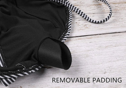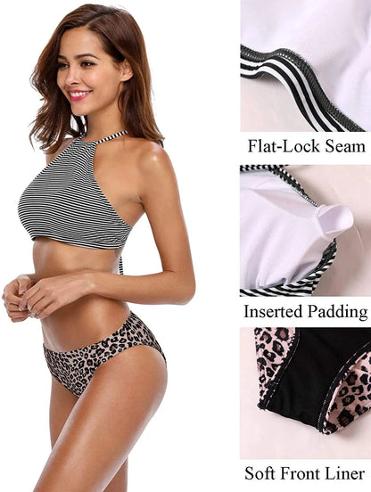 Pay in 4 instalments with AfterPay, Buy Now Pay LaterWomen's Striped Bikini Set High Neck Swimsuit Vintage Floral Swimwear Strappy Bathing Suit Padded Beachwear