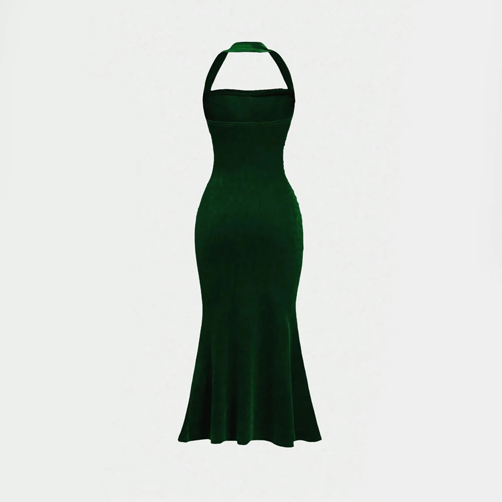 Women's Summer Elegant Plain Sleeveless Halter Neck Wrap Maxi Prom Dresses