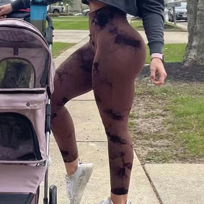 Womens Tie dye Gym Leggings Seamless Pants Scrunch Sports Fitness High Waist Workout Yoga Leggings
