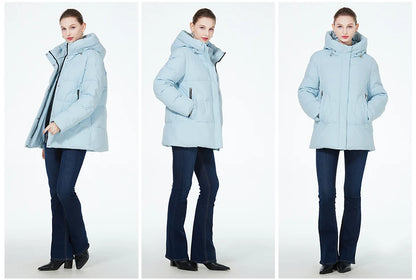Women's Winter Jacket Warm Thicken Short Outwear Windproof Coat Long Sleeve Zipper Parka with Hood