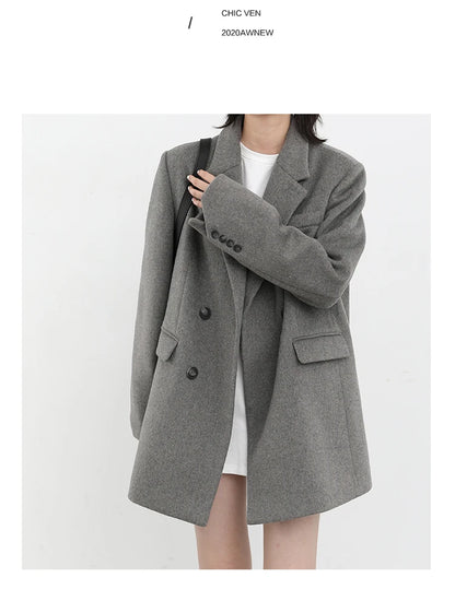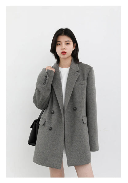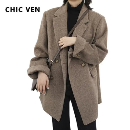 Women's Wool Blend Coat Solid Mid Long Woollen Blazer Thick Warm Blouse Overcoat Office Autumn Winter Jacket