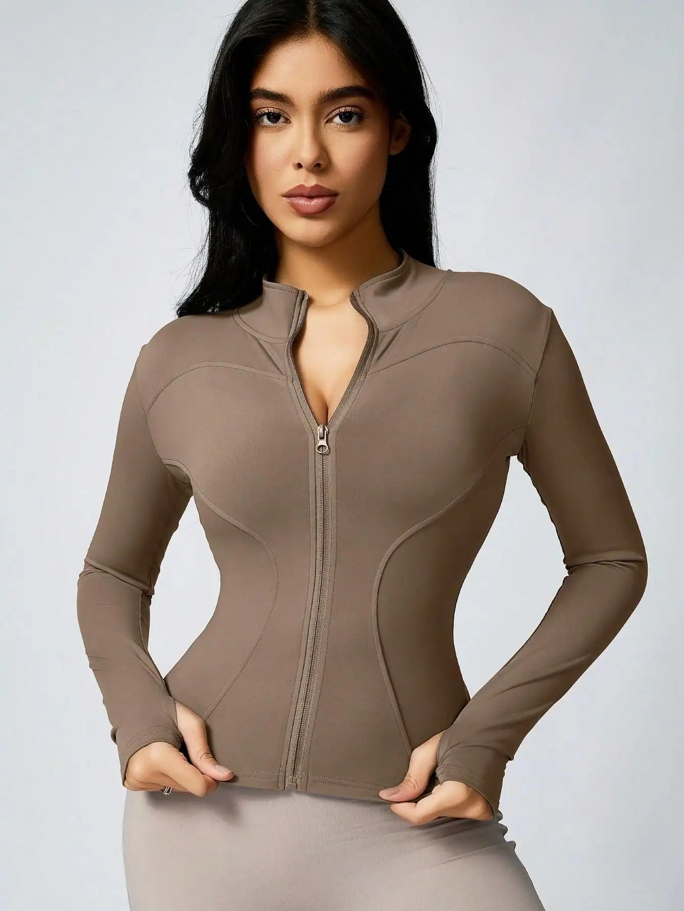 Women's Zipper Turtleneck Activewear Jacket Sports Long-Sleeve Sports Top Gym Wear Ladies' Sportswear for Indoor Outdoor Jacket
