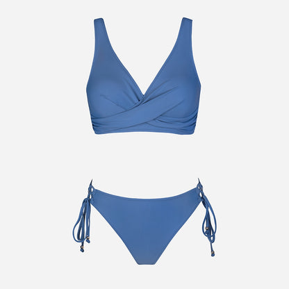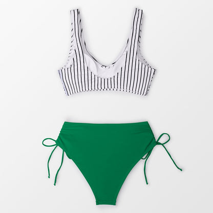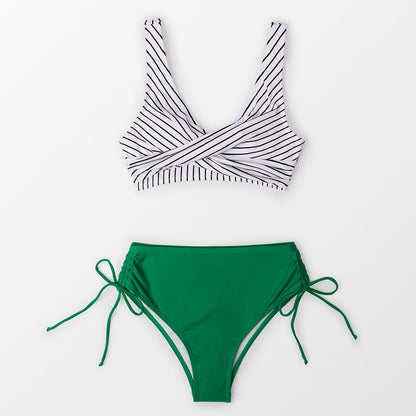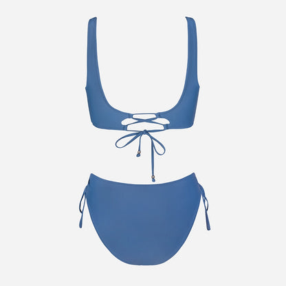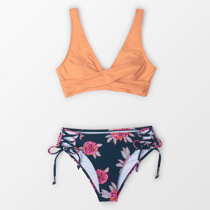 Print Mid-Waist Bikini Sets Swimsuit Lace Up Two Pieces Swimwear Beach Bathing Suits