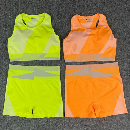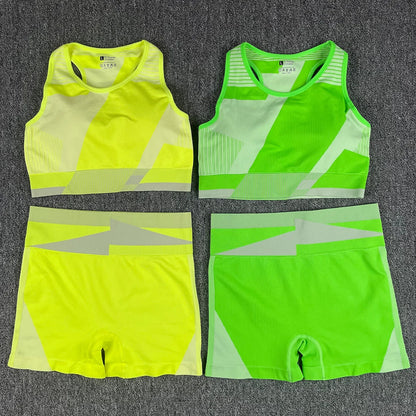Yoga Set Sport Bra and Shorts fluorescent Gym Set 2 Piece GYM Workout Sportwear Padded Vest Fitness Suit